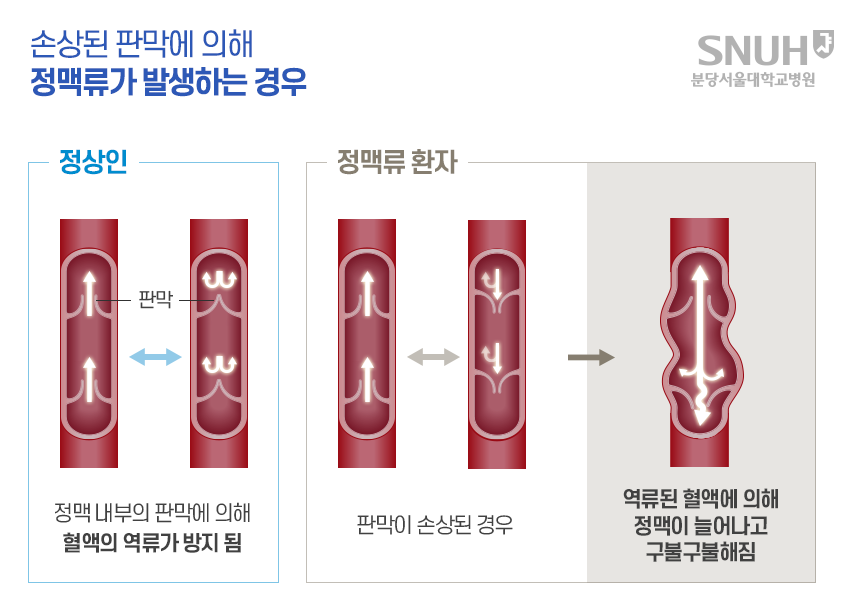 정맥은 내막 · 중막 · 외막의 세 층으로 되는데, 민무늬근과 탄력섬유가 적고 결합조직이 많기 때문에 탄력성이 작습니다. 이때문에 약간의 내압의 증가로도 잘 전달되며, 혈액저장소의 역할을 합니다. 그러나 한편으로는 탄력이 없기 때문에 중력의 영향음 무시할 수가 없습니다. 예를 들면, 다리의 정맥에서는 혈액속에서 생기는 압력으로 인하여 팽팽하게 늘어나다가 터지겠지만, 정맥의 내강의 군데군데에 정맥(靜脈)판이 있어서 혈액이 쌓이는 것을 방지하고 있습니다.